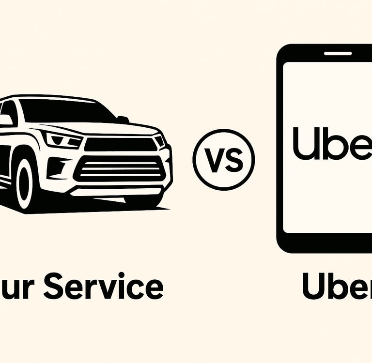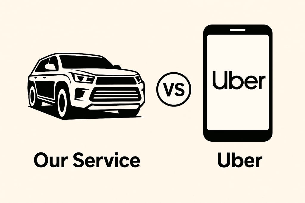 🚘 1. You Know What You’re Getting Uber is hit or miss — random cars and random drivers. With us: Clean black SUVs, professional drivers, and a smooth, consistent ride every time.